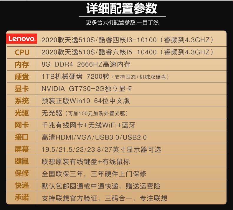 聯(lián)想臺(tái)式機(jī)電腦天逸510S/510PRO 十代六核I5-10400/四核I3 家用辦公商用財(cái)務(wù)炒股網(wǎng)課游戲設(shè)計(jì)全整套迷你主機(jī)